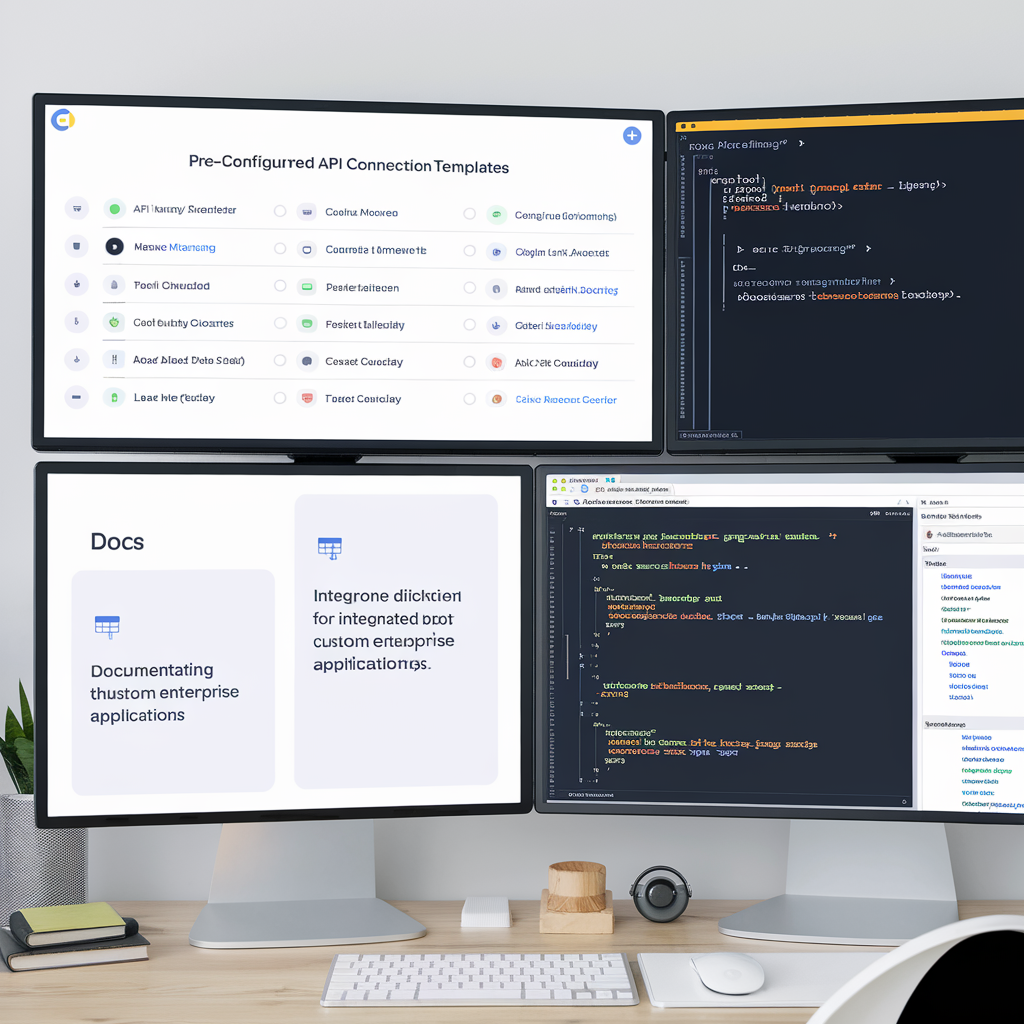 Pre-configured API connection templates and docs for integrating third-party services with custom enterprise applications.